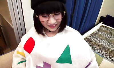 Lovely busty asian girlfriend fngers in glasses