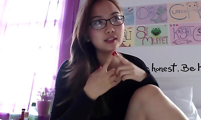 Nerdy stunner from the Far East wants her hatch to be filled with cum