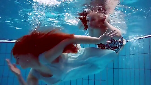 Two glamorous young white nymphs under water in bridgette nvg pool