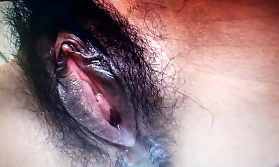 Bushy Oriental pussy close-up video being fingered and fucked hard
