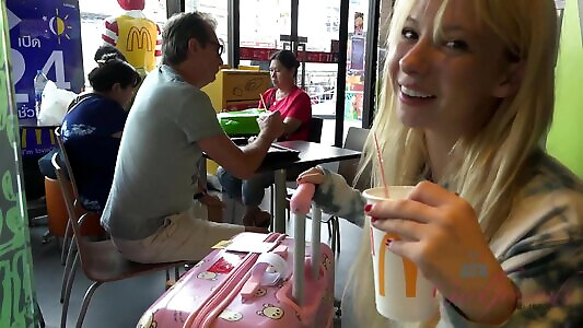 blondes teen mit großen schamlippen raucht, während es mit den füßen einen schwanz wichst
