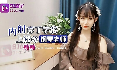 HOT Asian Piano Teacher fucks and Internal Cumshot her student on Christmas - Teen fucks teacher