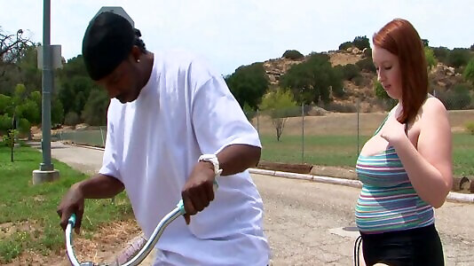 红头发的摩洛伊斯兰解放阵线打击一个大的黑色的阴茎和骑在它上面